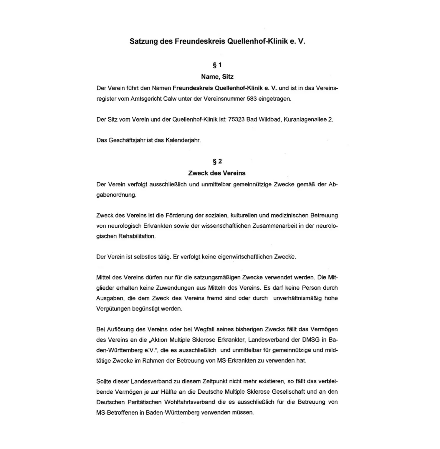 Der Freundeskreis Quellenhof-Klinik e.V. ist ein Verein, der selbstlos tätig ist. Wir verfolgen ausschließlich und unmittelbar gemeinnützige Zwecke gemäß der Abgabenverordnung. Zuwendungen sind steuerbegünstigt.