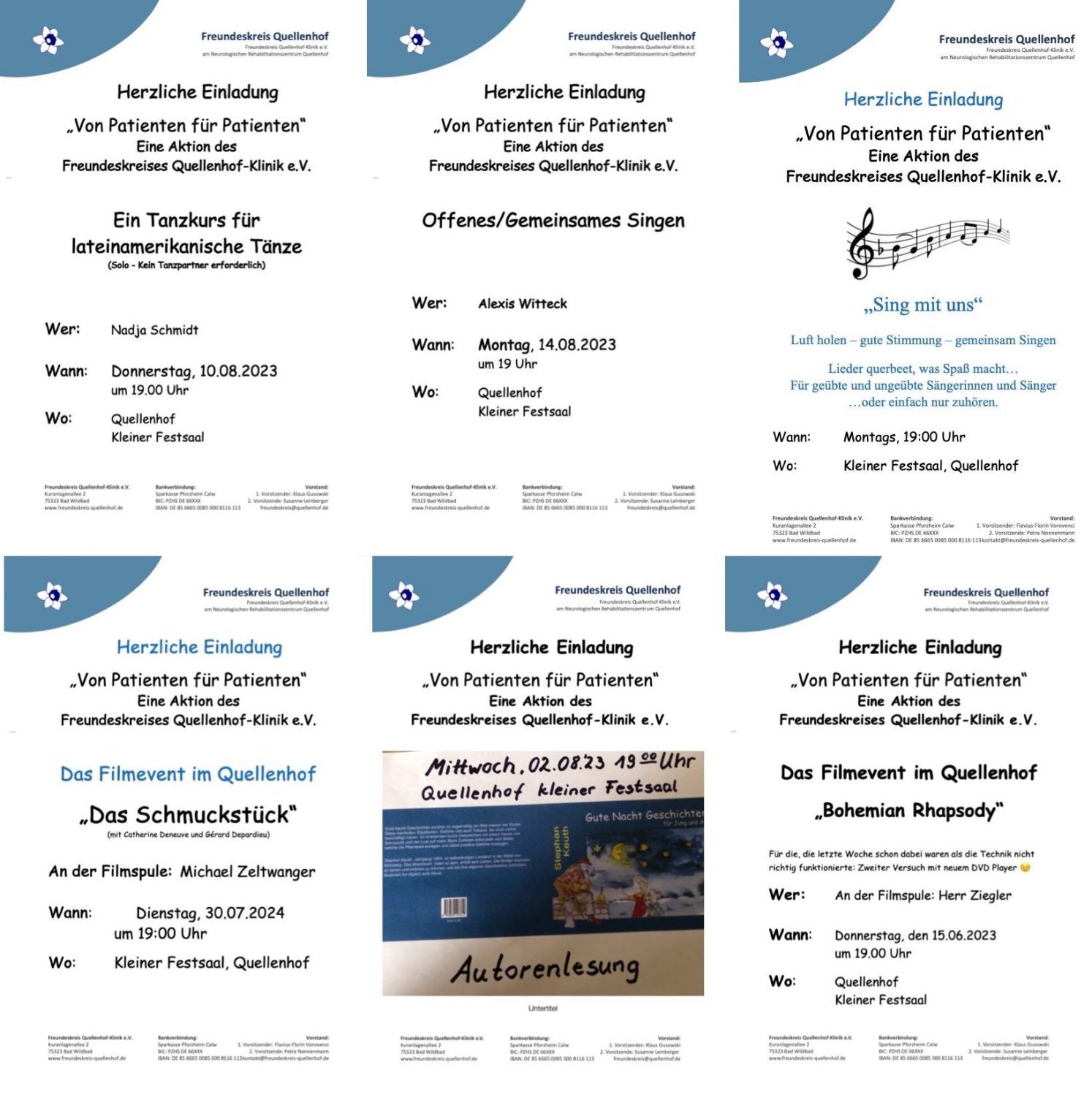 Aktivitäten einzelner Patienten die sie in Absprache mit dem Vorstand für die anderen Patienten anbbieten, die gerade im Quellenhof sind.